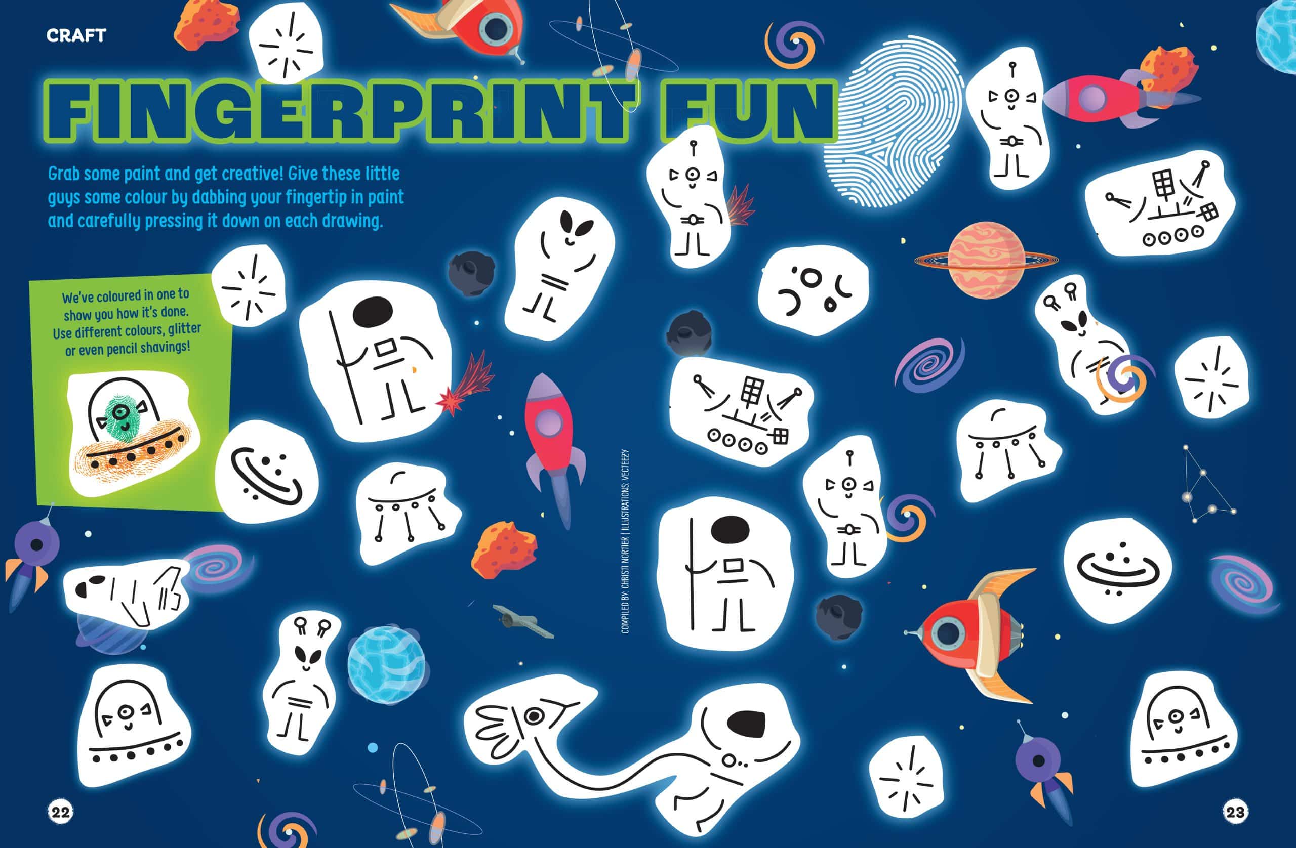 Grab some paint and get creative! Give these little guys some colour by dabbing your fingertip in paint and carefully pressing it down on each drawing.
