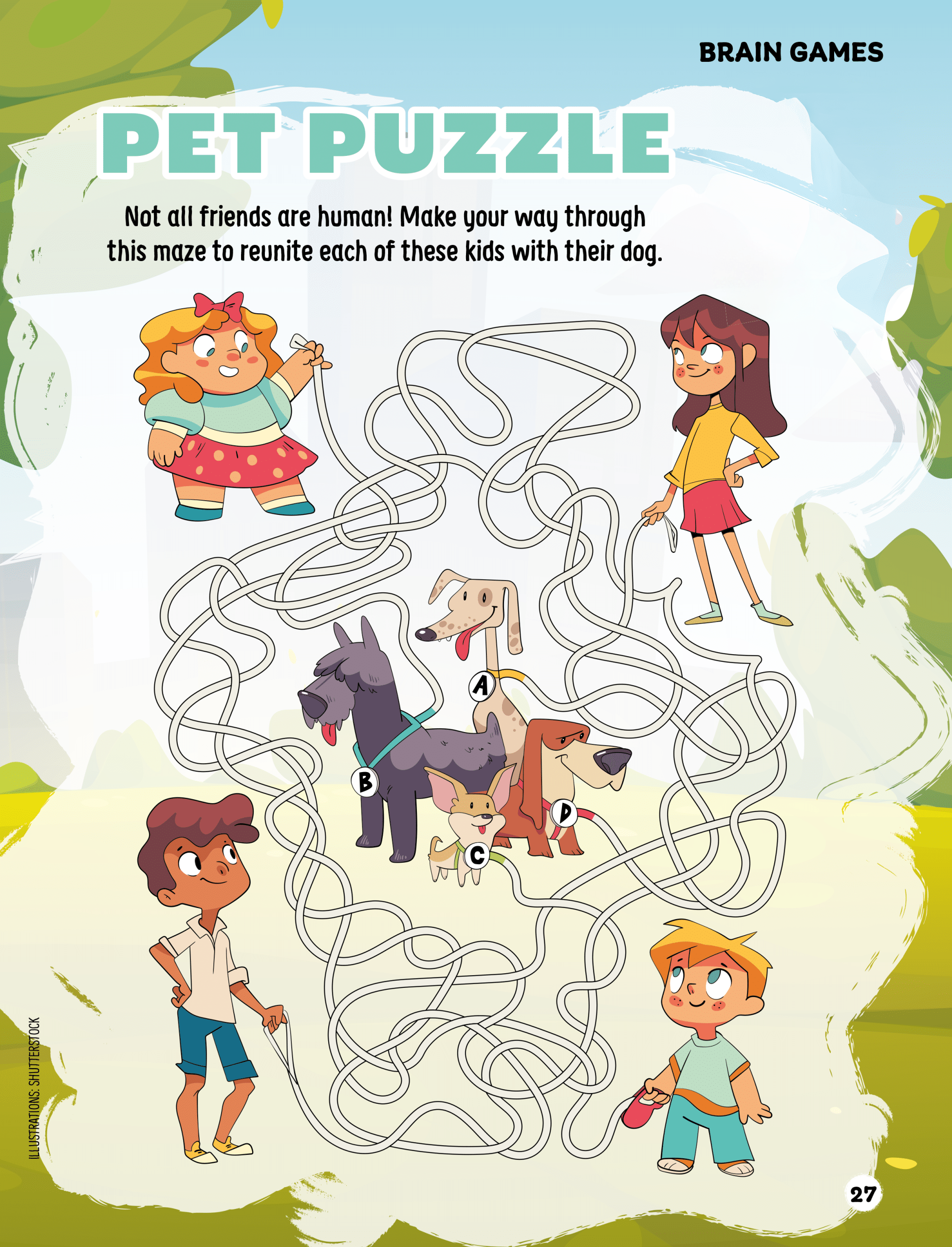 Not all friends are human! Make your way through this maze to reunite each of these kids with their dog.