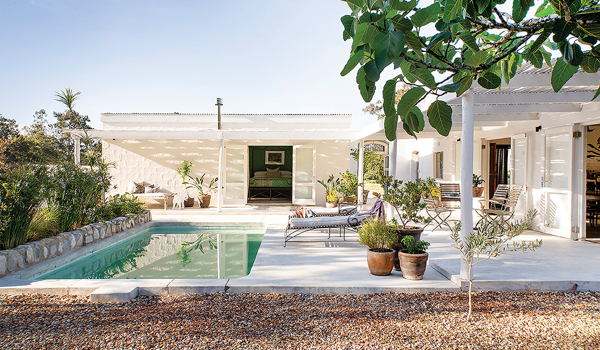 Set against the sweeping natural beauty of the Fazenda farm, Hacienda is a sanctuary that combines rustic charm with refined simplicity. Once an old farm cottage, the property was lovingly reimagined by hosts Marilouise and Jacques, who oversaw every step of the renovation in collaboration with skilled local artisans. True to its name, Hacienda encapsulates the essence of a laid-back yet stylish Latin lifestyle captured amidst the breathtaking nature of Swellendam. Every detail tells a story: Antique Indian doors open into the cottage’s bright and airy interiors, where natural light dances across the walls. Reclaimed furniture pieces and hand-picked treasures from various vintage stores infuse the space with character, while bespoke furniture anchors the rooms in authenticity. The palette is grounded in natural materials, woven baskets, raw timber, aged metals and fresh greenery. Every room feels curated yet comfortable, striking the perfect balance between intention and ease. The open-plan design drifts effortlessly to the outdoors, where a stone-edged pool shimmers in the sunlight and shaded terraces make for much-needed lazy afternoons spent with the farm’s horses. Rooted in history yet refreshed for today, the Hacienda cottage offers a serene haven where time slows down and breathing becomes lighter. Fazendaswellendam.co.za