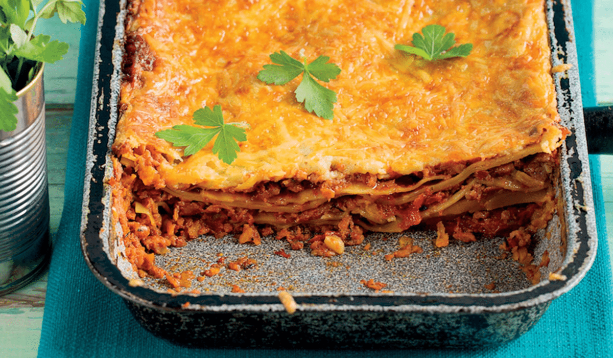 8. To assemble, spoona layer of filling over the base of an oven dish then top with a layer of lasagne sheets. Repeat until the filling is finished, ending with a layer of lasagne sheets.