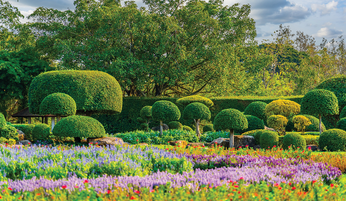 English gardens present a perfectly balanced mix of hardscaping and the subtleties of lush greenery and hedges. To bring this style home, consider planting generously, layering different flowers to create depth and interest throughout the seasons, including features such as ponds, fountains or bird baths to bring in natural reflection and a sense of serenity. “In South Africa, this could include indigenous flowering species such as Agapanthus, Dietes and Tulbaghia as well as grasses such as Aristida junciformis. This style of garden is well-suited to the addition of edible plants such as rosemary, thyme, citrus trees and some chilli plants,” adds Craig. Classic touches such as wooden benches, a flower-laden pergola or a sundial lend an air of old-world romance to invite wandering, lingering as well as endless moments of discovery.