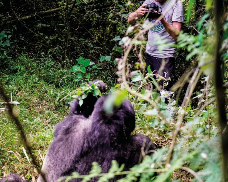 Growing up as a young barefoot boy on a remote Eastern Cape farm, I must have read those original Tarzan books by Edgar Rice Burroughs a dozen times. And ever since, I dreamed of trekking into those fecund jungles of deepest, darkest Africa, and hopefully come face to face with the great apes of the mother continent Fast-forward five decades to the Great Rift Valley, and I’m fortunate enough to find myself in Rwanda, winding my way into a jade world where an incredible 17 primate species have been documented. Up ahead, blue ridges spike high against neighbouring Uganda and the Democratic Republic of Congo, and the most fecund jungle imaginable simmers all around. We’re 30 minutes into the ascent from Volcanoes National Park headquarters, with our group quietly tramping through vast fields of stinging nettles and the wayward sway of looming bamboo forests. Shafts of light refract through the towering trunks, tinting the surrounds in verdant tones.