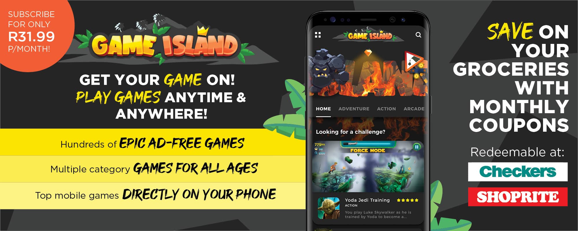 Get access to 100’s of exciting mobile games every day for unlimited play! No adverts during game play! Games range from classic arcade and adventure, to strategy, sport and more. New games are added every month for freshness and variety.