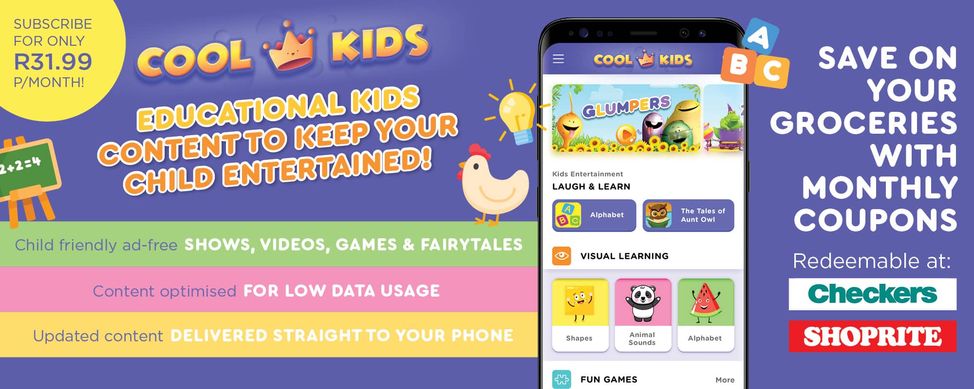 Want to provide your child hours of endless entertainment including animated TV shows optimised for low data usage? Cool Kids offers four different animated and kids’ video programs that are both entertaining and educational. It also offers kids’ mobile games, as well as a variety of fairy tales in audio form.