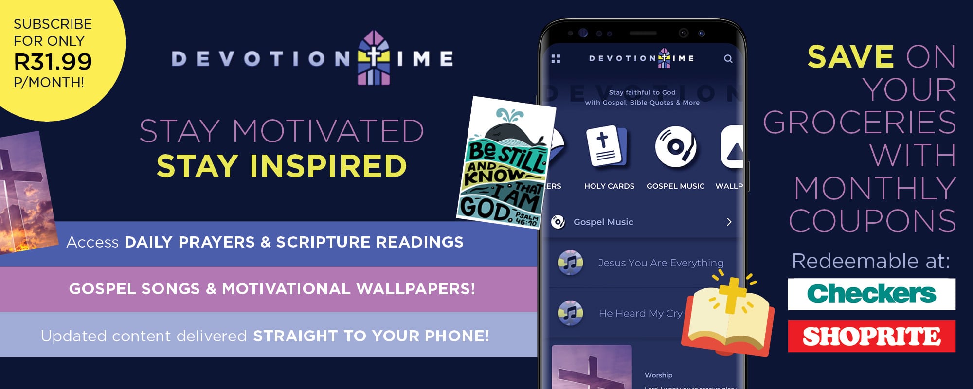 Get unlimited access to inspiring contemporary gospel music today! Devotion Time also offers access to Daily Scriptures taken from the Holy Bible, Daily Christian Prayers, and Quotes about the Gospel, with new content daily. You can also download gospel related Wallpapers and inspiring stickers to use on your phones and social media!