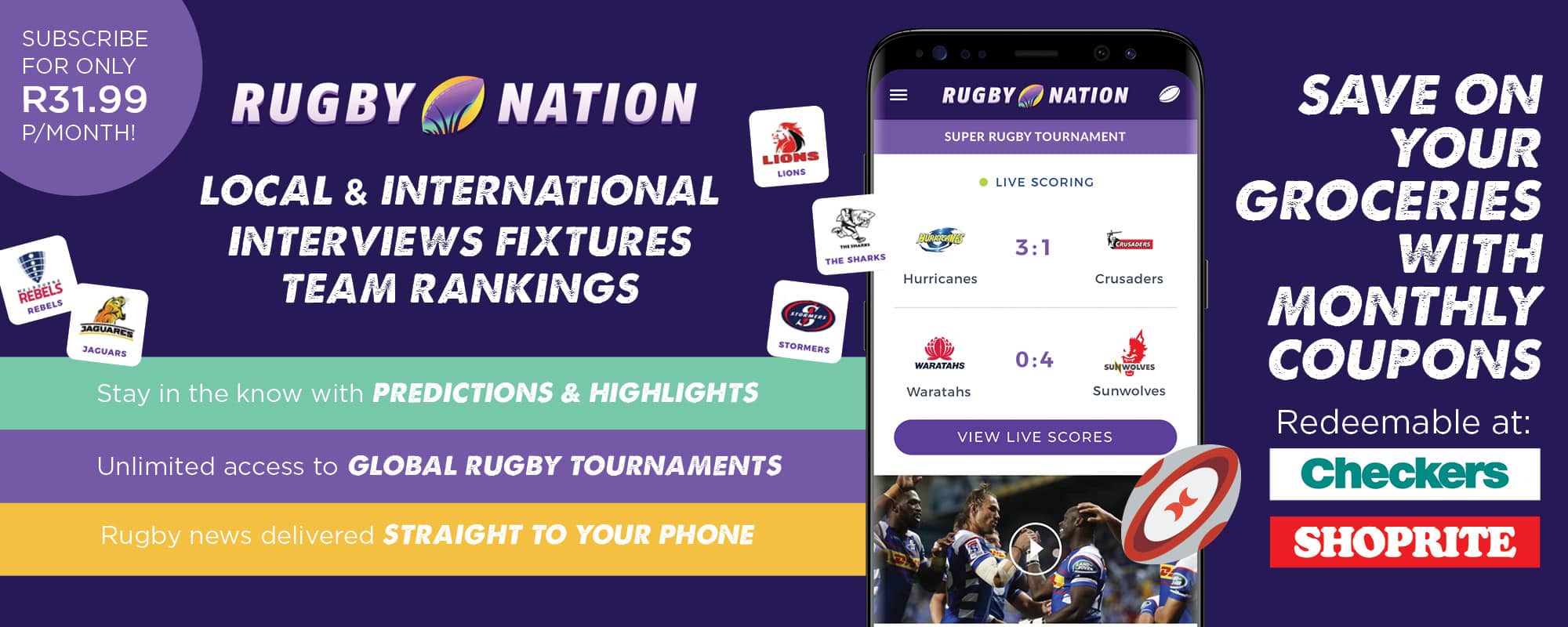 Want the latest rugby news straight to your phone? Subscribe now for a round-up of the latest local and international rugby news. Rugby Nation offers breaking and in-depth news articles, as well as match reviews and previews, fixtures and results. During the Super Rugby season there will be live scoring and leaderboards!
