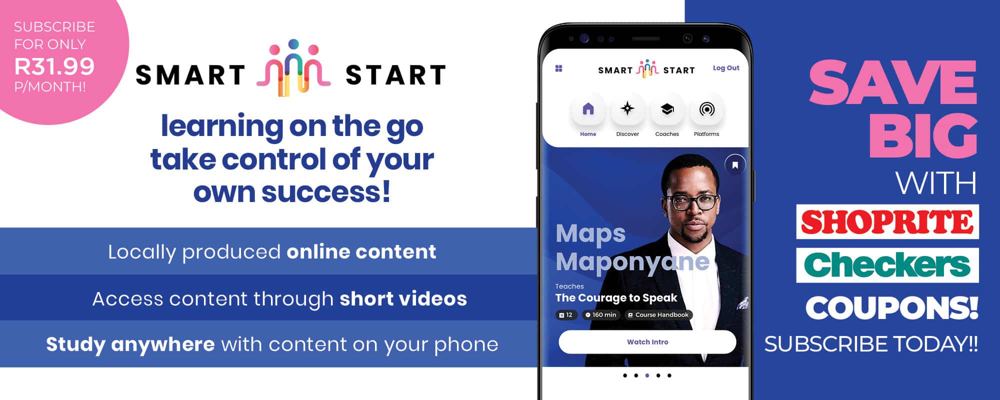 Smart Start is a South African platform offering locally made online content taught by top icons and experts. Through short videos, gain valuable skills and insights to elevate your own journey. Explore topics like Art, Business Strategy, Entrepreneurship, Public Speaking, Comedy, and more!